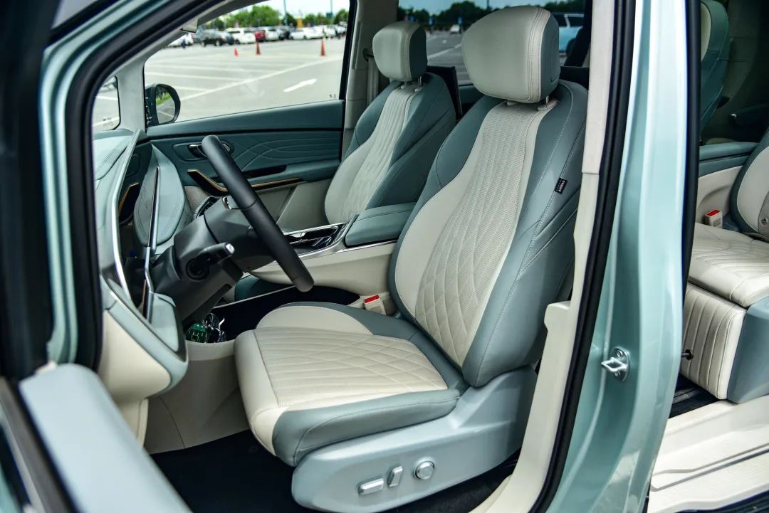 尺寸方面,车辆的长宽高分别为5270/2000/1840mm,轴距达到3200mm;轴距相比大家熟知的别克GL8还要长一些。后两排配有隐私玻璃,2024款新车增加了专属的冰翡绿车身颜色增加新鲜感,车顶则采用黑色涂装,形成双色车身设计。此外,新车还配备19英寸十五辐轮圈,相比老款车型增加了一定的豪华感。