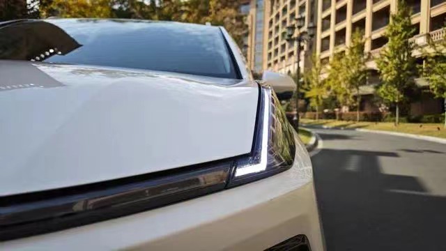 动弹出,或者按一下前门的感应区域就能弹出,而这样的设计目的就是为了降低风阻,减少能耗。车尾的设计同样非常有意思,贯穿式LED尾灯沿着中部和两侧边缘做铺垫,形成一个H型的设计效果,点亮后同样极具辨识度。