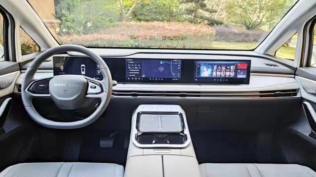 和外观一样,进入上汽大通MAXUS G70的车内,也是一股满满的“新能源风”,其中最吸引人的就是其采用的三联屏设计,三块屏幕均为12.3英寸液晶屏,分辦率也都是1920*720,极大提升了座舱的科技气息和档次感。